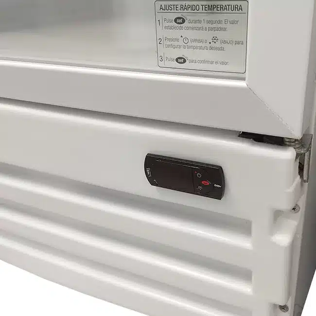 INFORMACIÓN GENERAL Capacidad (lts.): 390 Dimensión Externa (mm):625x620x1780 Peso neto/bruto (Kg):76/79 EQUIPAMIENTO Estantes ajustables: 3 Luz interior: 10 W Puertas: 1 (panel 2 vidrios, exterior templado LOW-E ) ESPECIFICACIONES Voltaje / frecuencia: 220V /50 Hz Rango de temperatura (grados centigrados): 0 /+7 COMPONENTES Refrigerante (libre cfc): R-290 Condensación: Estática Evaporador: Roll Bond Ventilador evaporador: Tangencial Exterior gabinete: Prepintado Interior gabinete: PAI PRODUCTO DE SEGUNDA SELECCIÓN 2da. selección por detalles estéticos mínimos Garantía 6 meses.