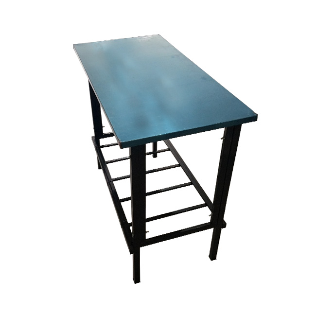 Mesa de trabajo de acero inoxidable Patas de caño pintado Base de madera de 18mm Con estante inferior rejilla Largo: 1,17 m Ancho: 56 cm Alto: 90 cm
