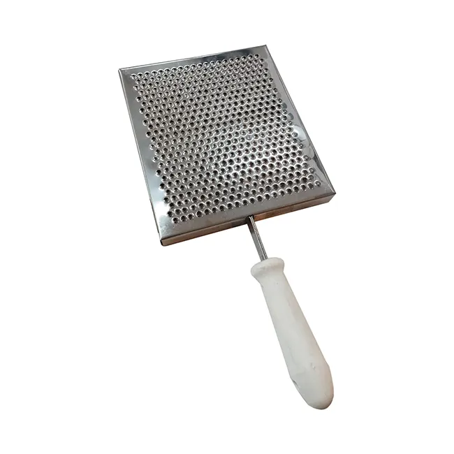 Rallador plano de queso de acero inoxidable Acero Inoxidable AISI 430 Mango PVC lavable homologado Medidas: Rallador plano de queso- Ancho 29 cm x largo 44 cm Máxima higiene y menor adherencia de la suciedad y agentes externos. Fácil limpieza y gran durabilidad. Resistente al calor y excelente conductor del mismo. Material reciclable.