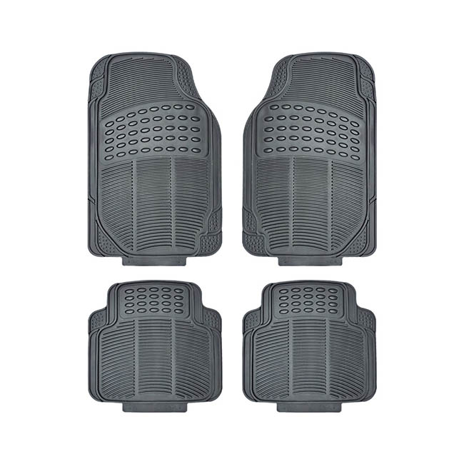 Set de 4 unidades de cubre alfombras de PVC 5 mm Material: PVC Medidas frontales: 67 cm × 43 cm Medidas traseras: 32 cm × 43 cm Diseño 3D Espesor: 5 mm Superficie antideslizante Color: negro Origen: China